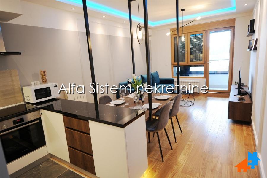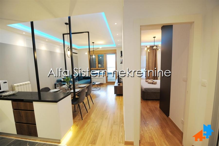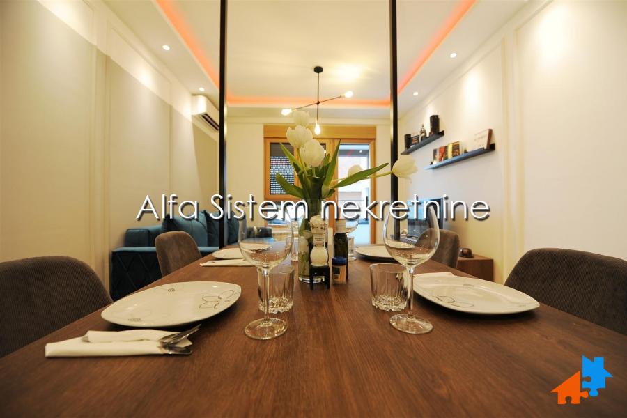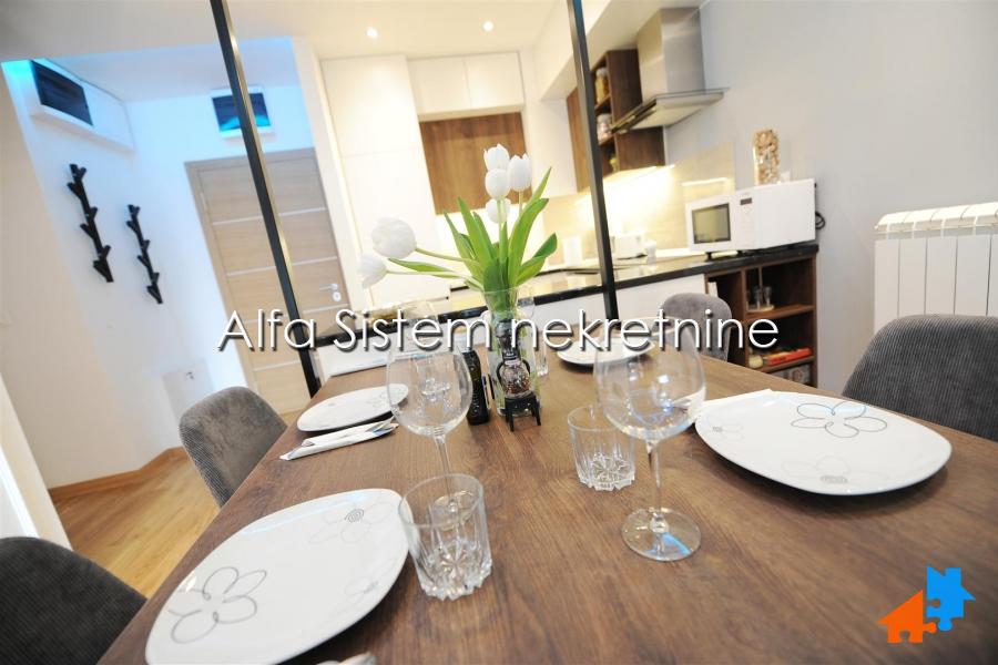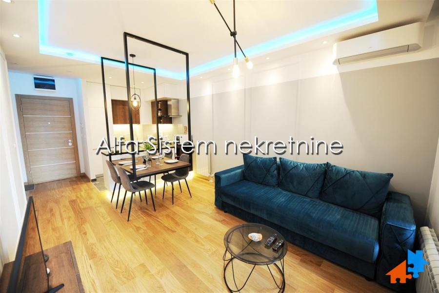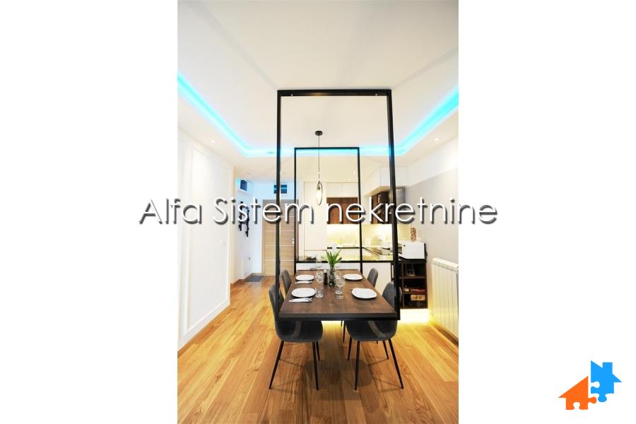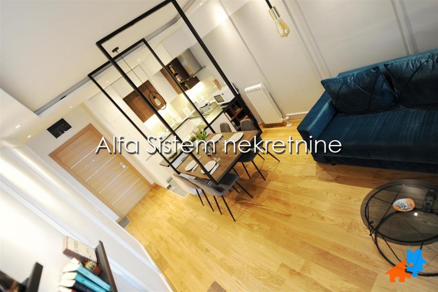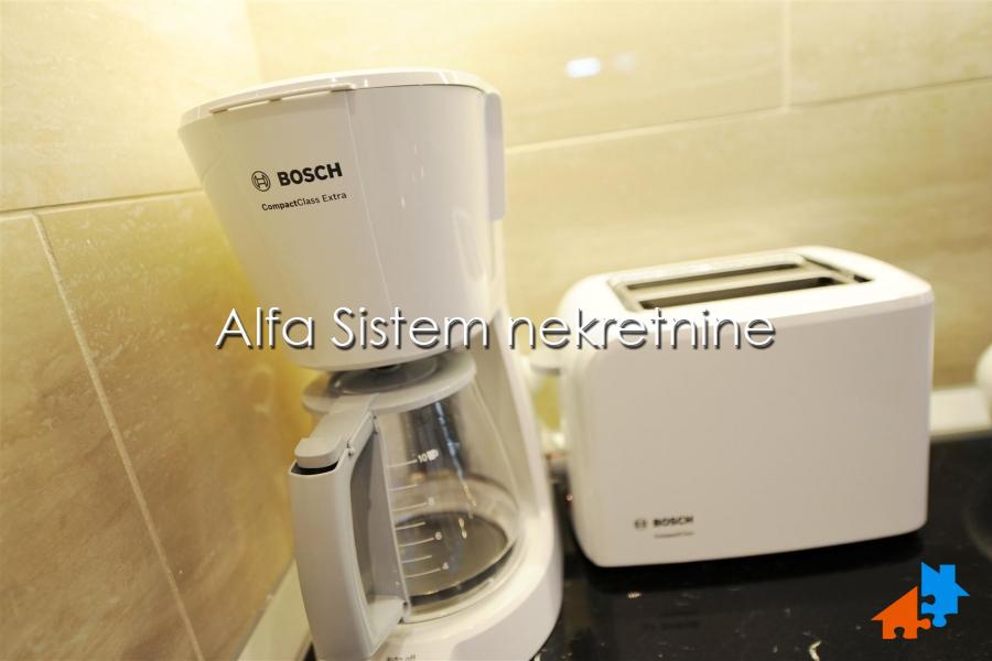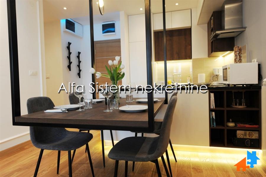 Stan odlikuje izuzetna funkcionalnost, prostrani dnevni boravak i posebna spavaca soba sa velikim krevetom ručne izrade. Sav namestaj je ručne izrade i unikatan (osim sofe koja je kupljena gotova). BOSCH tehnika u celom stanu.
