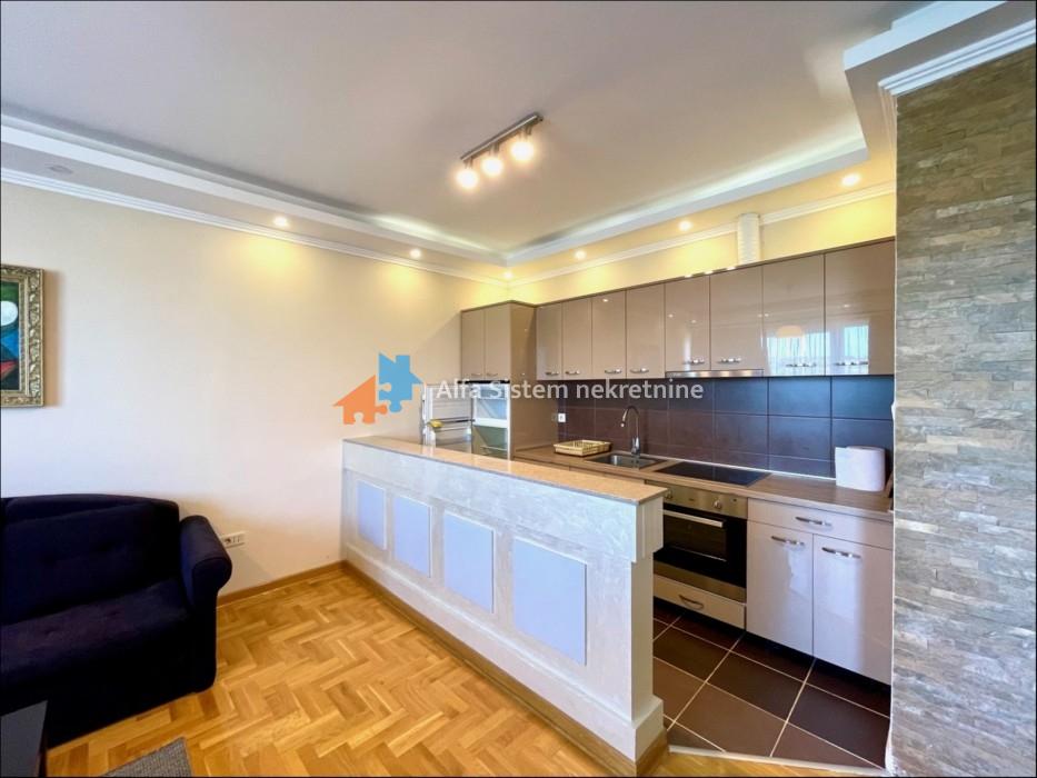Stan je kompletno opremljen za život, sa novim i kvalitetnim stvarima (tv, klima, dva garderobera, garnitura na razvlačenje, veš mašina, šporet, mikrotalasna, frižider sa zamrzivačem, aspirator i kompletno opremljena kuhinja).