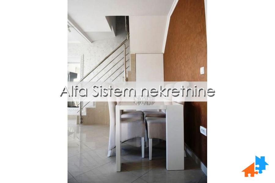 Stan se sastoji iz dva nivoa i ukupne površine je 140m2 + 2 garažna mesta i ostava ukupne površine 45 m2.