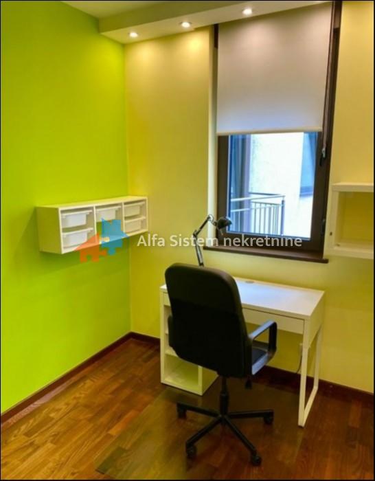 Po strukturi je dvoiposoban i sastoji se od prostranog dnevnog boravka sa trpezarijom, kuhinje, spavaće sobe, dečije sobe, kupatila, toaleta i hodnika. Stan je veoma svetao, potpuno namešten i opremljen svim neophodnim uređajima za udoban život. Grejanje je podno, a zgrada poseduje interfon i video nadzor.