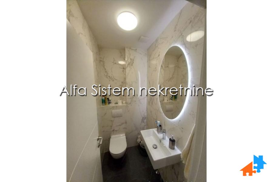 Dnevno-trpezarijski open space sa kuhinjskim delom i izlazom na terasu, još jedno kupatilo i gostinski toalet.