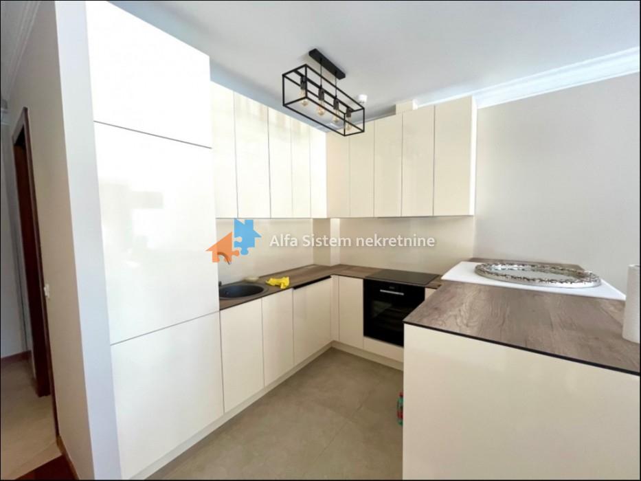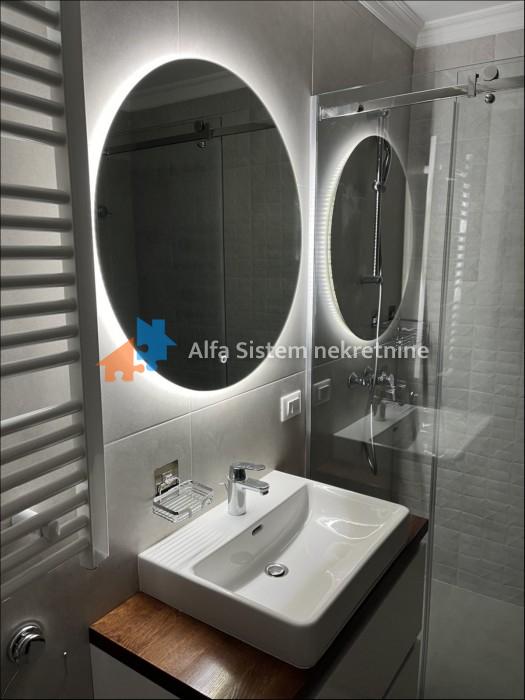 Enterijer je moderno i elegantno dizajniran, sa pažljivo odabranim materijalima i detaljima, dok je raspored funkcionalno organizovan kako bi se postigao osećaj prostranosti i luksuza. Posebnu vrednost stanu daje prostrano privatno dvorište od 100 m² – idealno za uživanje, odmor ili druženja.