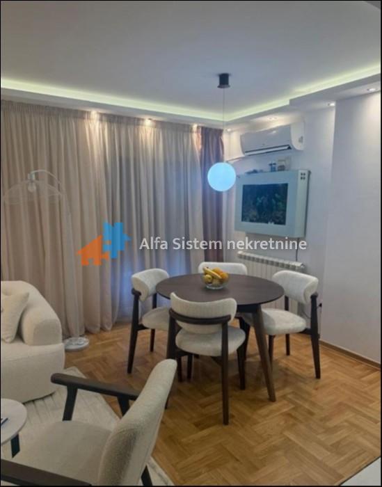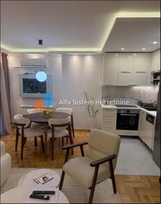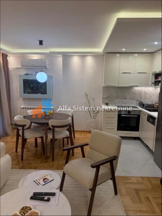 Raspored čine dnevna soba sa trpezarijom, spavaća soba, kuhinja, kupatilo i hodnik. Stan poseduje dve manje terase orijentisane ka mirnoj strani. Grejanje je etažno, uz individualnu kontrolu troškova. Opremljen je novom kuhinjom, kompletnom tehnikom, klimom, internetom, kablovskom i velikim plakarima.