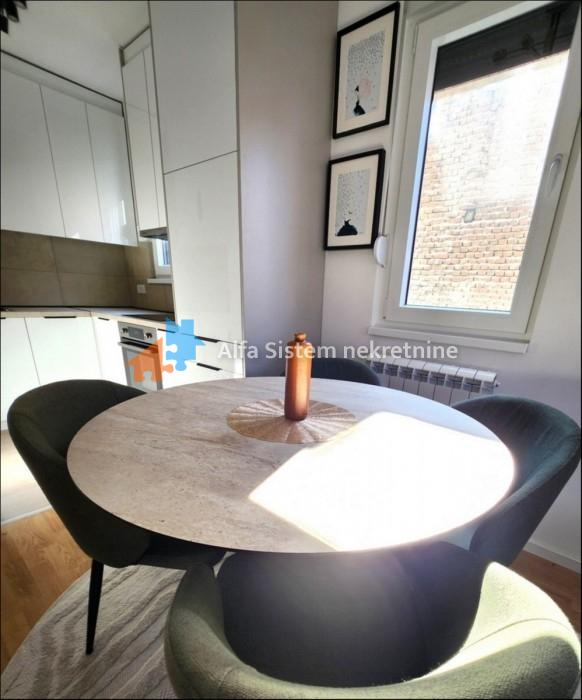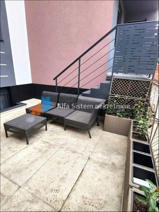 Stan je kompletno namešten i nikada nije useljavan. Sastoji se od prostrane dnevne sobe, dve spavaće sobe, kuhinje, kupatila i dvorišne terase od 19m², koja opciono može služiti kao parking mesto za drugi automobil. Opremljen je klimom, KATV-om, internetom, interfonom i video nadzorom.