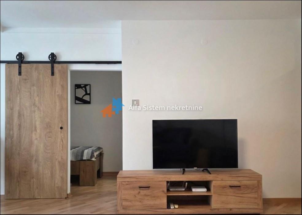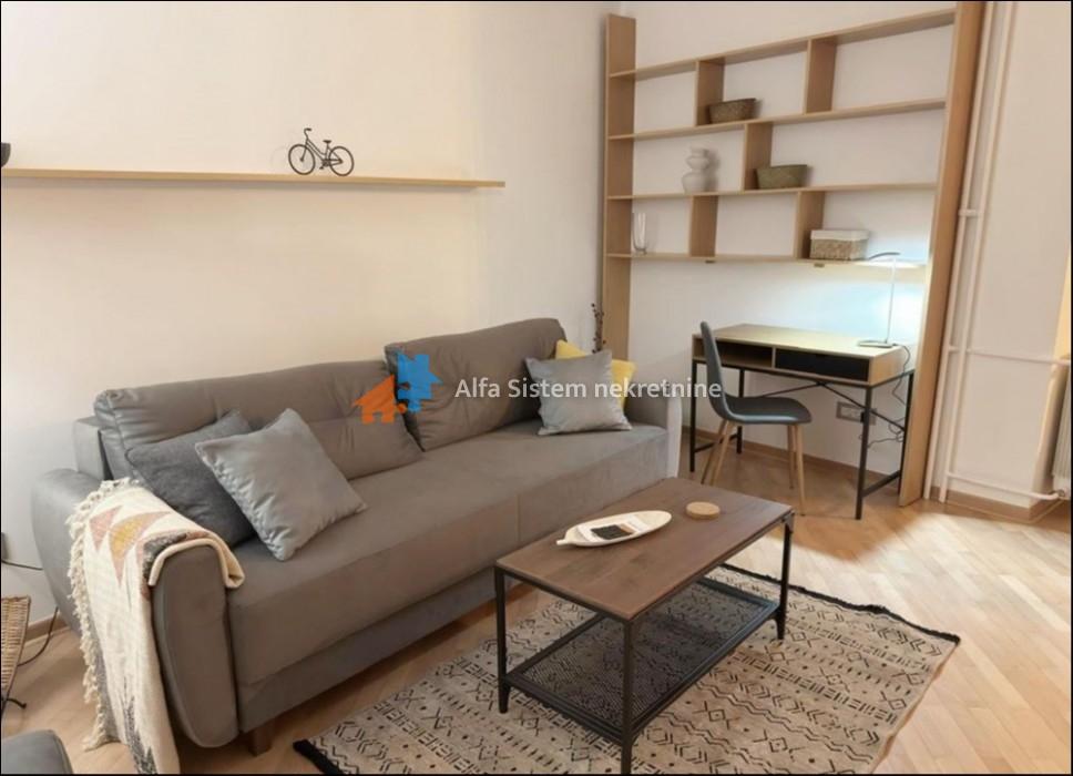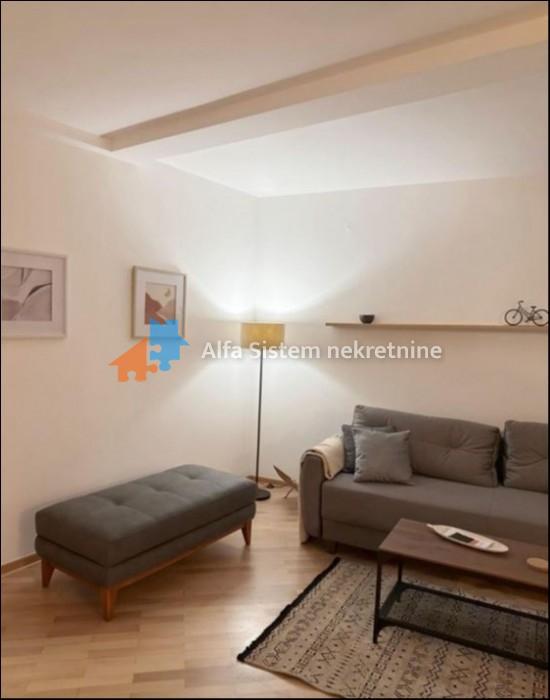 Stan se sastoji od dnevne sobe 37m² sa delom za odmor, rad i trpezariju, sa potpuno novom sofom koja moze da se koristi kao bračni krevet, odvojene potpuno opremljene kuhinje, spavaće sobe, kupatila i hodnika sa velikim ugradnim ormarom. Opremljen je novim nameštajem i kvalitetnom belom tehnikom, uključujući veš i sudo mašinu, klima uređaj i internet.